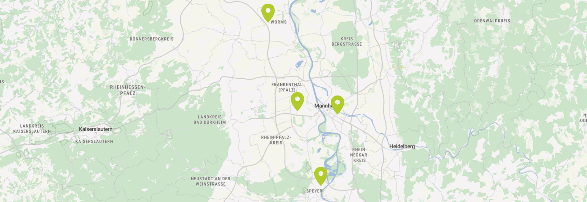 - Standorte in Mannheim, Ludwigshafen, Speyer und Worms